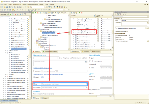 После обновления конфигурации при заполненных реквизитах доставки в карточке контрагента автоматически в експресс-накладной будут заполняться город/отделение доставки