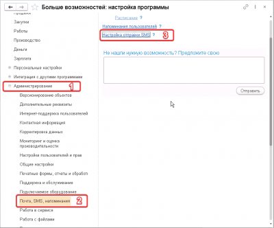 Компания ⇒ Администрирование ⇒ Почта, SMS, напоминания