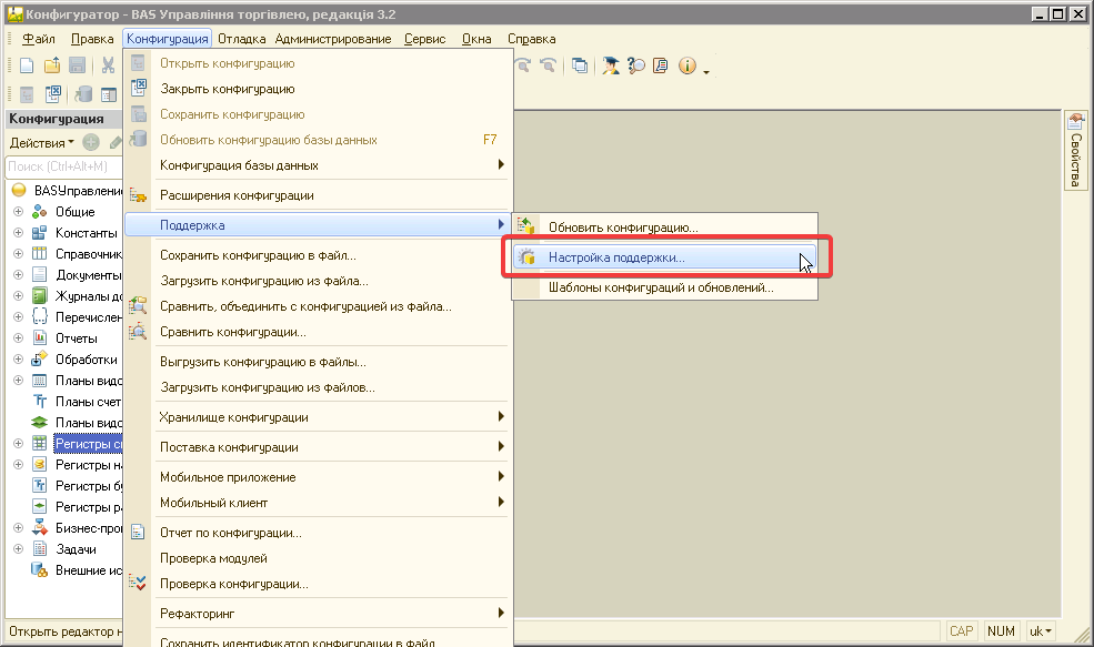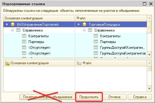 Нажимаем «Обновить конфигурацию баз данных» и соглашаемся на реструктуризацию: