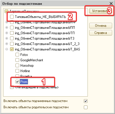 В случае если файл поставки содержит несколько модулей (например Prom.ua и Rozetka.ua) то необходимо отметить все требуемые подсистемы