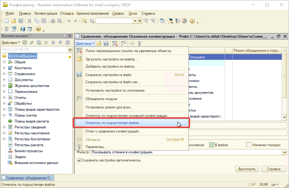 Нажимаем «Обновить конфигурацию баз данных» и соглашаемся на реструктуризацию: