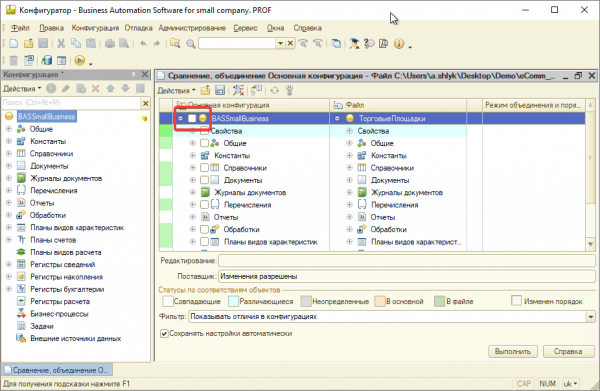 Объединение с конфигурацией модуля “Торговые площадки”