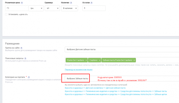 Трудности с привязкой товара к портальным категориям