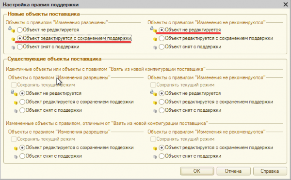 Если конфигурация ранее дорабатывалась то сразу переходите к добавлению справочника “ХарактеристикиНоменклатурыПрисоединенныеФайлы”, так как возможность редактирования уже включена